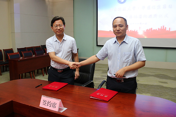 在簽約儀式上,王文圣代表華盛江泉集團分別與山東科技大學機械電子工程學院黨委書記陳濤簽訂了《校企合作協(xié)議》,與機械電子工程學院副院長韓寶坤簽訂了《高層次人才引進協(xié)議》。隨后,陳濤為教學實習基地授牌。授牌儀式后,雙方與會人員共同合影留念。